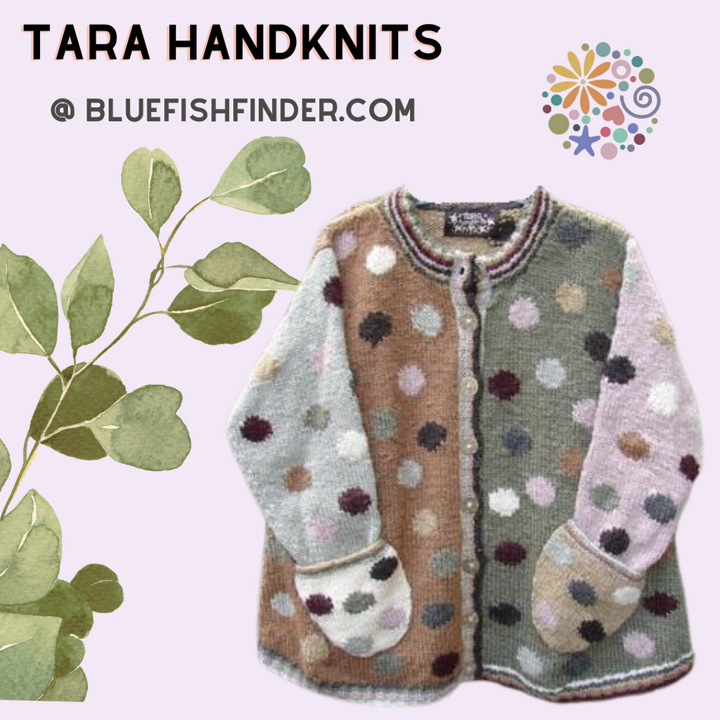 Tara Handknit Sweaters were designed by the Hot Knots Sisters Andrea and Gayle Shackleton of Northern California and created through the Association of Craft Producers ~ A Non Profit Women's Cooperative in Kathmandu, Nepal.