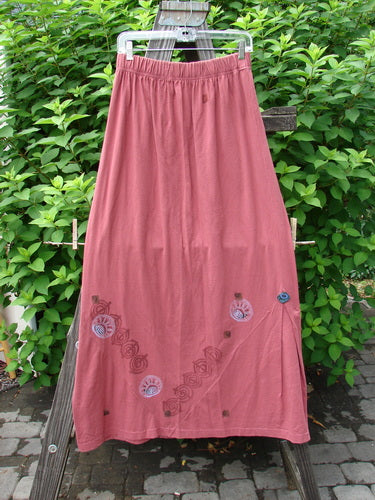 This Flutterless Flutter Skirt is from the Fall Collection of 1996 in Ember is in Perfect Condition made from Organic Cotton. The features Include: A Widening and Generous Hip measurement ~ Classic 1996 Abstract Tumble Stone Theme Paint ~ An A Line Lower and a Full Elastic Waistline ~Unique Lower Sectional Triangular Side Panels which are then Pleated and adorned by Two Painted Cloth Covered Buttons but sadly are missing the flutters ~ The Measurements are as Follows: Waist Fully Relaxed 28 ~ Waist Fully Extended 50 ~ Hips 50 ~ Sweep 62 ~and the Length is 42 Inches.
