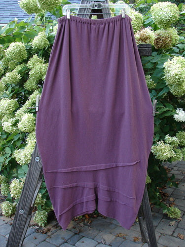 This Awen Skirt is from the Winter Collection of 2000 in Murple in Perfect Condition made from a Heavy Weight Cotton Thermal with just a Touch of Lycra. The Features Include: A Full Elastic Waist Band ~ A Generous Lower Bell Shape with a Lower Taper ~ A Generous Hip Measurements and A Textured Flattened Diagonal Hemline with Interesting Folds of Directional Fabric. The Measurements are as Follows: Waist Relaxed 32 ~ Waist Extended 46 ~ Hips 56 and the Length is 45 Inches.